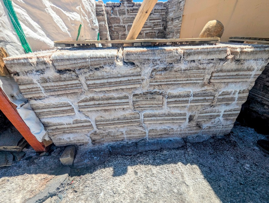 We were impressed with there method to prevent entrance of rodents; broken glass was wedged beneath the foundation stones .