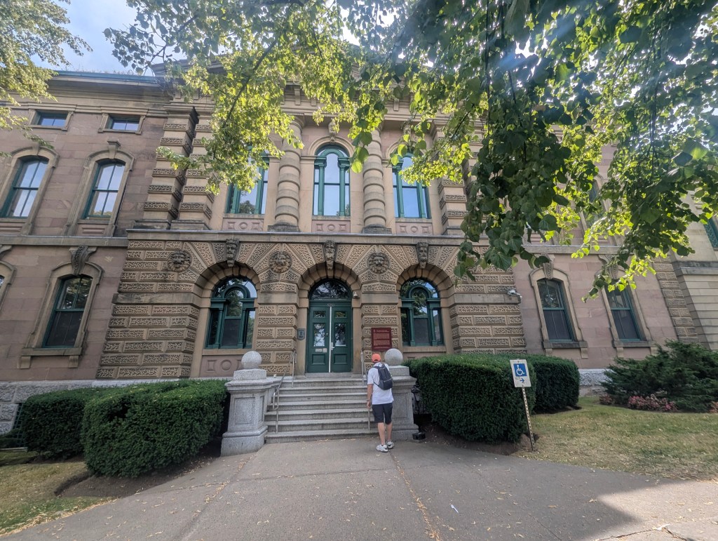 As the day was still young, and we had plenty of energy, we headed out to have a look around. Halifax is located on the ancestral lands of the Mi’kmaq who lived in the area long before Europeans arrived. Mi’kmaq called the area “Great Harbor”. The city itself was established by the British in 1749 in violation of treaties with the Mi’kmaq. The establishment of the city led to Father le Loutre’s War, otherwise known as the Anglo-Micmac War. General Edward Cornwallis brought nearly 1,200 settlers to the new town of Halifax, which was named after the 2nd Earl of Halifax in England. Due to his success in extending American commerce, the Earl became known as “father of the colonies”. One of the first places we encountered was Province House, the seat of the Nova Scotia House of Assembly. The three-story building is built in the Neo-Classical style with Nova Scotia sandstone. It is the oldest legislative building in Canada and has been the meeting place for the Nova Scotia legislative assembly since 1819. The building is a National Historic Site of Canada.